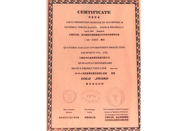 • Premio de oro de la séptima feria internacional de China de protección ambiental
